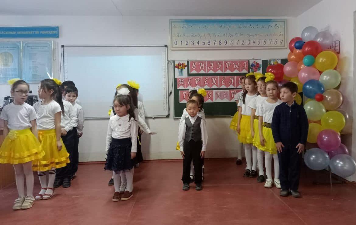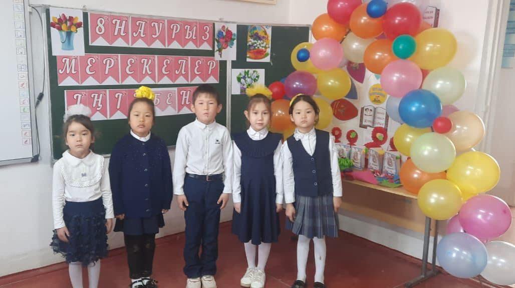 Сабақ барысында оқушылар ана жайлы тамаша сөздер, өлеңдер, әндер айтып, аналар мен аруларды мерекелерімен құттықтады.